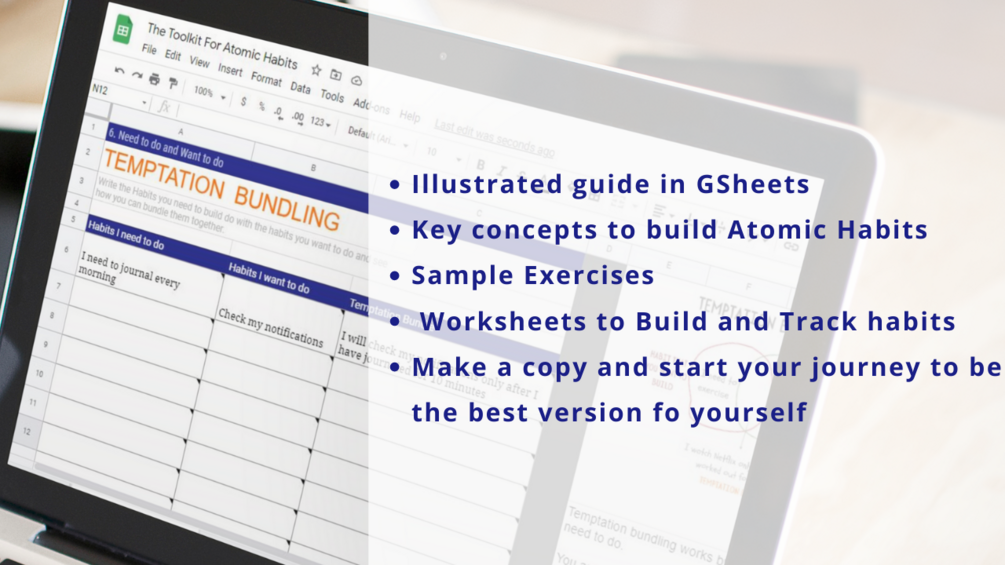 This toolkit condenses the knowledge from the phenomenal book Atomic Habits and turns them into actionable insights that work for you right from Today!