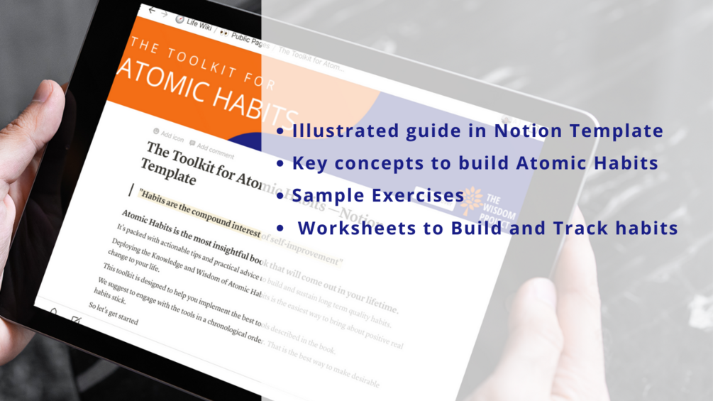 40 page PDF e-book, condensing the Wisdom of the phenomenal book Atomic Habits. + Optional -- Toolkit for Atomic Habits(PDF, Notion Doc, Google Sheet) + Optional -- 30 min Zoom call with us to help you jumpstart your journey of Atomic Habits.